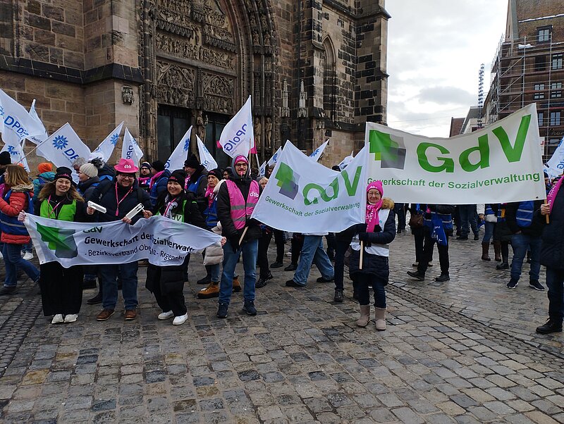 Die GdV Sachsen-Anhalt war beim Warnstreik in Magdeburg am 28.01.2026 mit 11 Mitgliedern stark vertreten – ein sichtbares Zeichen der Solidarität. Unterstützt wurde die GdV-Truppe dabei auch vom stellvertretenden Bundesvorsitzenden Martin Peters, der extra aus Thüringen angereist war.